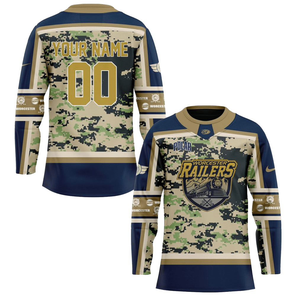 See the product images of the Custom Worcester Railers Military Specialty Long Sleeve Shirt Worcester Railers Merch For Fans below: